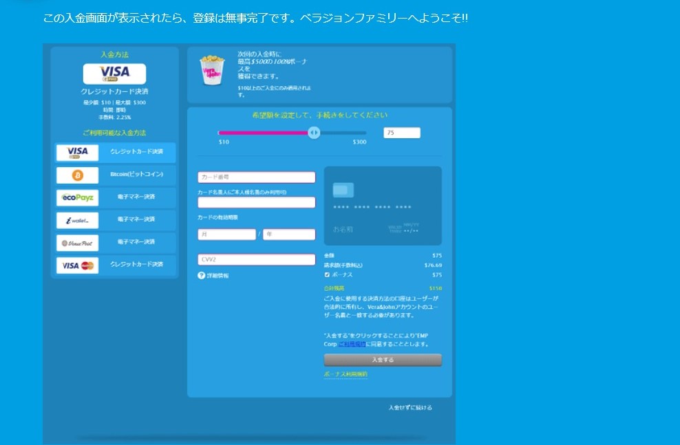 ベラジョンカジノに登録して遊んでみることにしました。